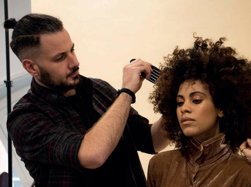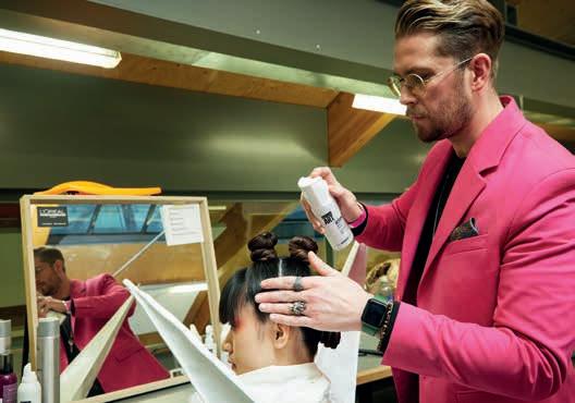 Obviously, there’s a ipside with social media. Does he read the comments? “You try not to!” he laughs. “It’s hard because what all these followers don’t know is the big plan that the talent has.” It’s something he’s experienced rst-hand. “When you do something to their hair that’s maybe not what they’re known for, their followers will tell you that this is not okay! ‘Bring the quiff back!’ Oh god, sorry – that was a line I had to deal with!