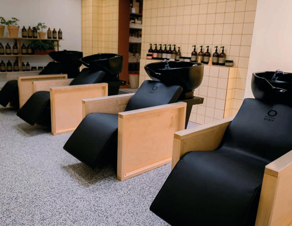 The third salon from design-led sustainable salon owners Stephen Buller and Anita Rice, this east London outpost has reworked an old Chinese restaurant to create a retail concept store that showcases the best nature has to offer. Walls are surfaced with husks of spelt from Organoid, and Danish designer Jonas Edvard has created bespoke lamps made of seaweed and recycled paper. Innovation is key to the concept of this open and inviting harvest yellow and terracotta accented space, say Stephen and Anita. “My favourite part of the new space is the incorporated lifestyle store, which has ethically-minded homeware, skincare, and haircare and organic wines. It allows the clients to do some fun shopping when they visit the salon,” adds Stephen. Independent and local artists have got in on the action at the salon too, contributing greeting cards, trays and a select book offering. Alongside all this you’ll nd organic hair products from Oway, with re ll options for all.