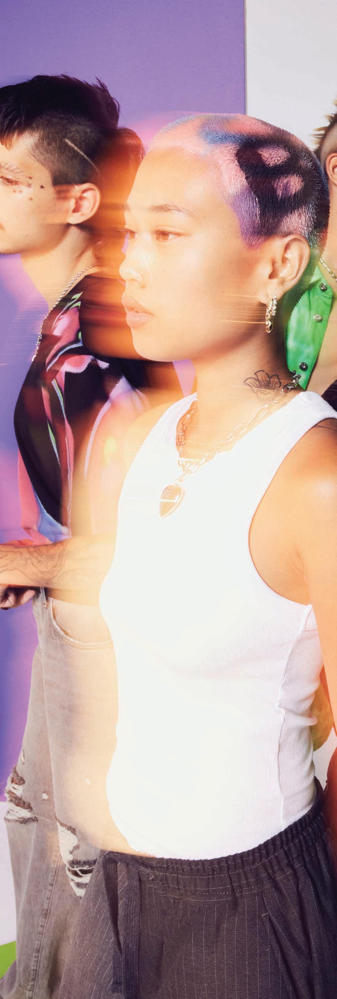 Welcome to the world as seen by Jody Taylor: imperfection is perfection, where history helps him tell new stories. Capturing a spirit of restlessness and rebellion, he channels the inspiration and energy seen from his work for labels such as Vetements, Fred Perry, JORDANLUCA and Bretton Woods to showcase an authentic arena of self-expression, interpreting the hair concepts and their specific references from a brief curated by Creative HEAD – to illustrate the creativity and possibility behind new CustomFX from BaByliss PRO. This runs through every element of the shoot. The block colours of the set and the wardrobe? They mirror the colour customisation at your fingertips. The models? They are not your expected by-the-numbers examples of physical excellence. Each one has a story and attitude that seeps from them. Fluid, free, following their own bliss – encouraging you to follow their lead and do the same…