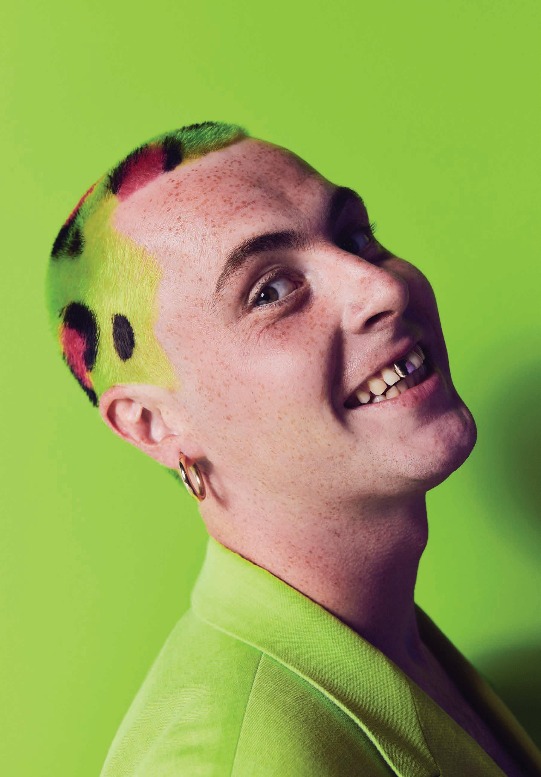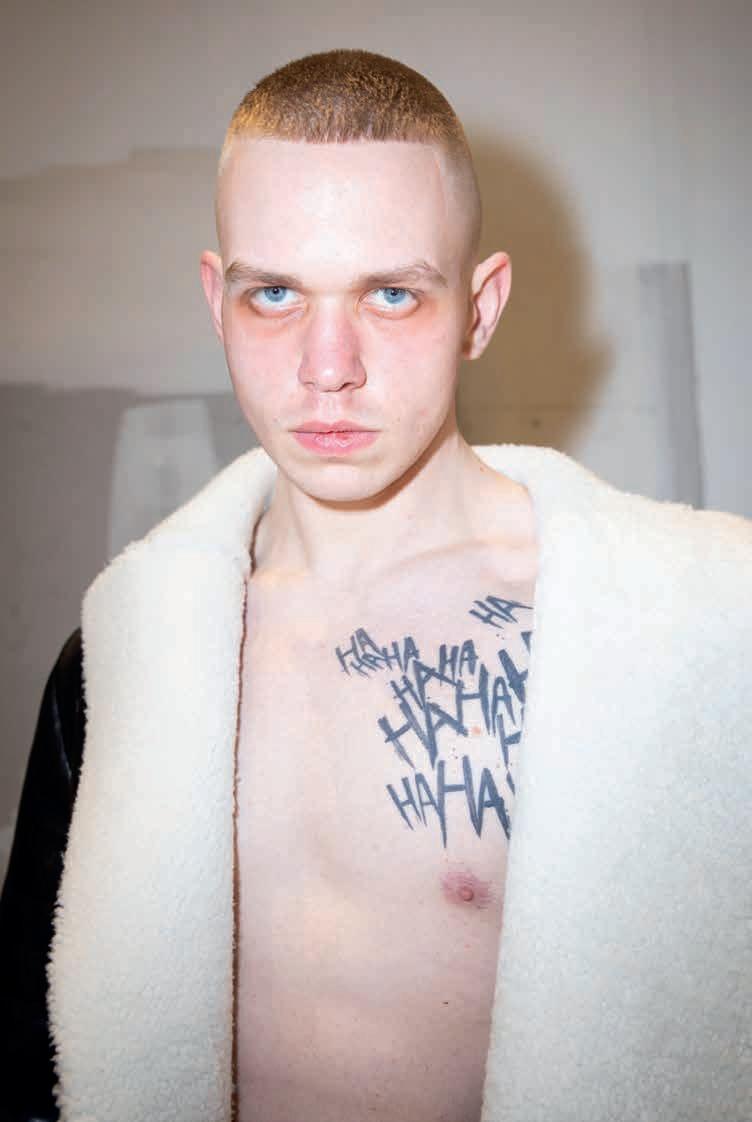 Jody embraced an existing uneven undercut, working with it by cutting in a fringe. “He’s got a really cool look, a really good attitude about himself. He’s an interesting character, gold teeth, but he’s gonna have quite feminine hair. It’s that juxtaposition, hair and style that I’m interested in.”