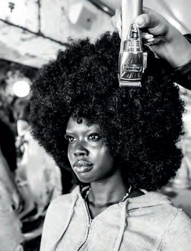 Both a guest on the Studio 54 dancefloor and a performer, Grace Jones had a style and an attitude like no other – confrontational, unapologetic, raw. A perfect source of inspiration for this look. “This shoot is all about imagining a modernday version of Studio 54. We just love the idea of the contrast of the cut and the colour. Think of Studio 54, it’s all about being iconic, looking strong,” explains Michelle. Clippered to a level 1.5 with tighter edges, with the BaByliss PRO Cordless Rose Gold Super Motor Clippers, this is a boundarypushing finish.