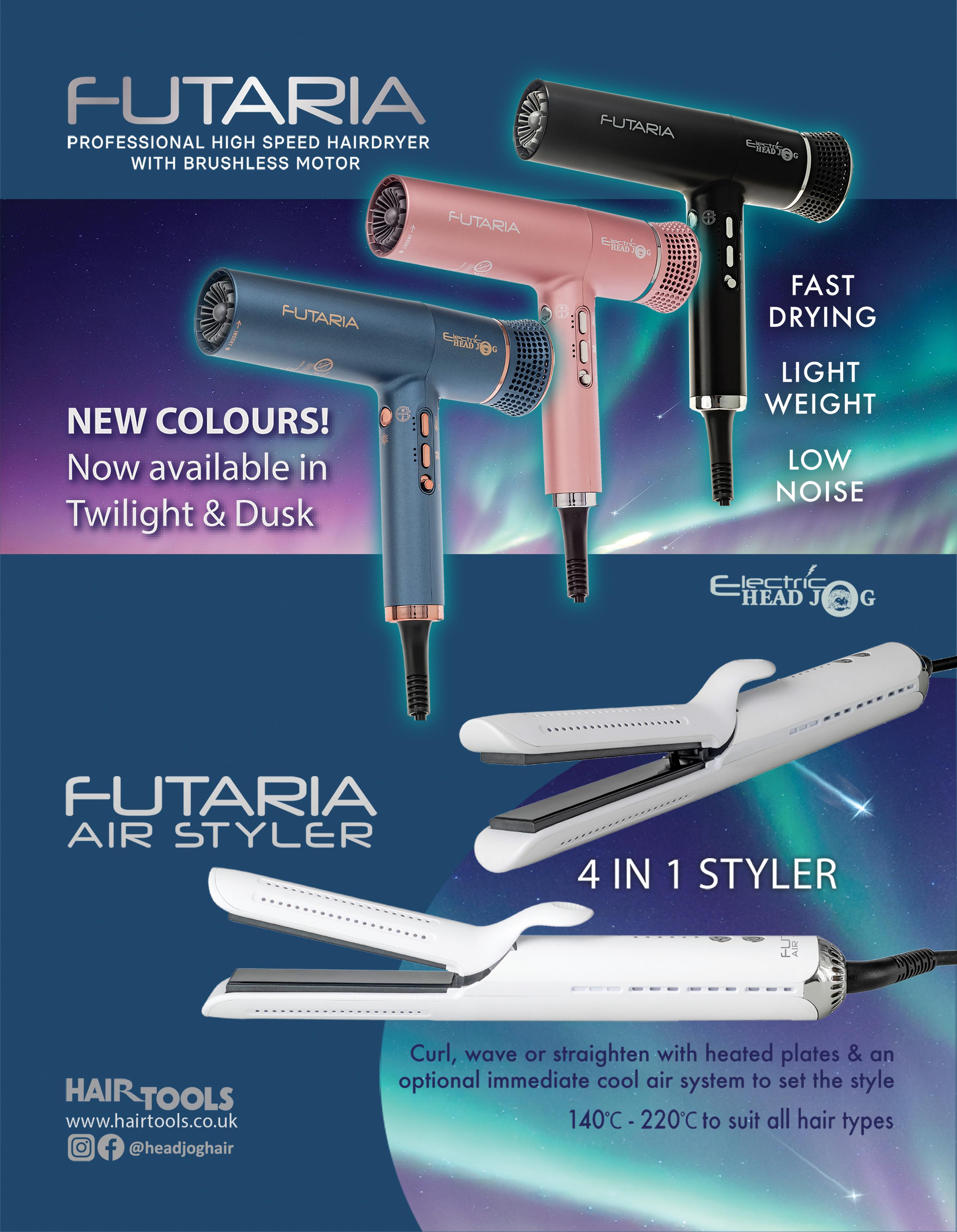 Low noise, fast drying, and feather light, the Electric Head Jog Futaria hair dryer is all these things and more. It comes in three chic colours –black, twilight and dusk There’s a cold shot button too!