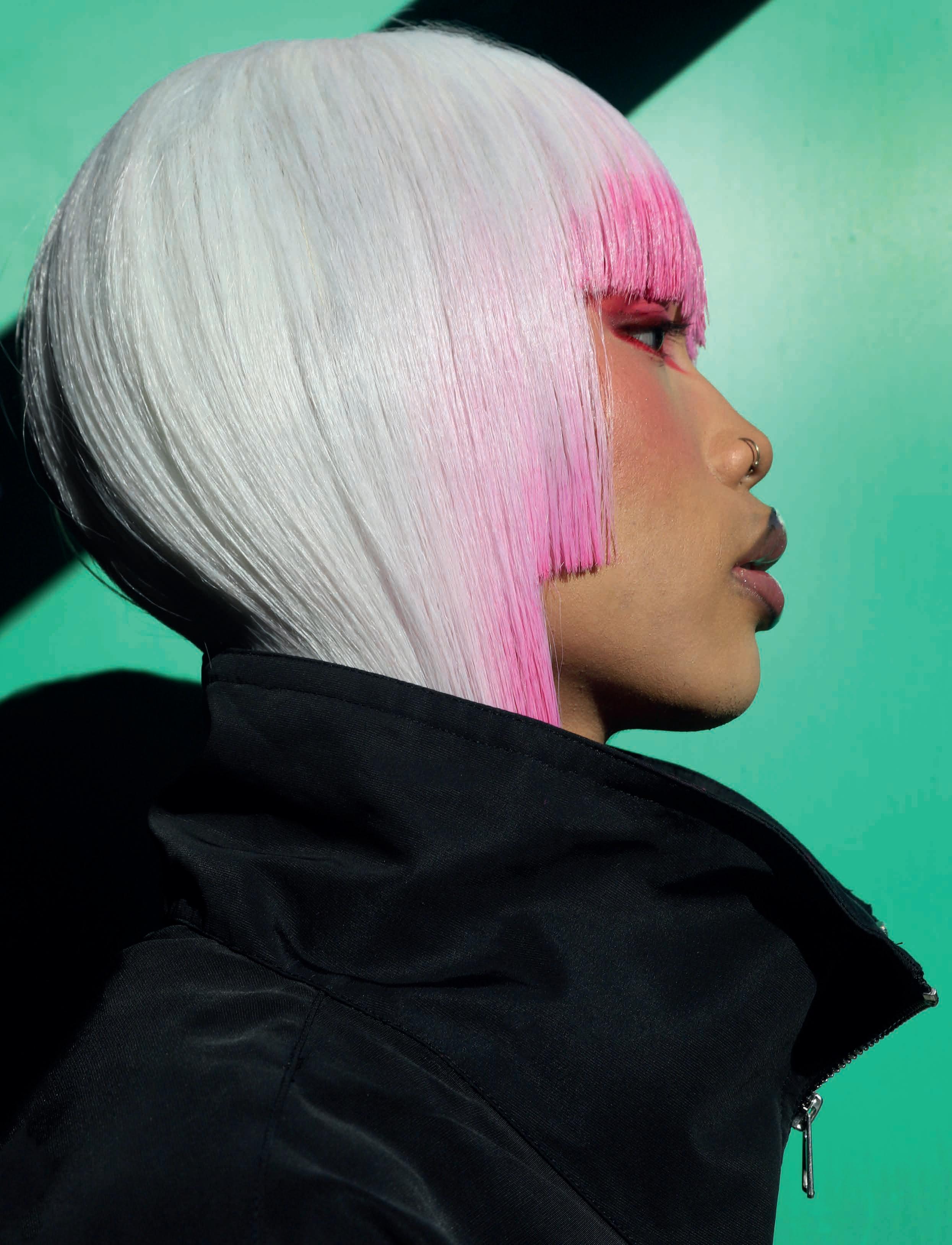 Don’t be surprised if you see an in ux of new colourful requests this autumn. Colour blocking is already ‘a thing’ in creative, self-expressive industries such as fashion, make-up and design, and it’s ltering down to the high street at a rate of knots. From high-contrast shades of blonde to cool combinations of tonal browns, dreamy romantic pastels and optimistic, bright power pops, there’s a vibrant, positive energy about this trend – using colour to re ect or lift mood, with clever combinations and playful geometry conveying a more extroverted, happy feeling. In times of strife (which, let’s be honest, we’ve had plenty of in recent years), we seek joy wherever we can get it, including our hair colour.