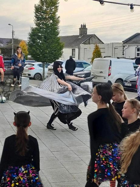 Our second public-facing event was a Halloween themed ‘Festival in a Van’ day at the Town Hall square in October 2023. Festival in a Van provided the stage and sound and we invited local drama facilitator and musician Danna Davis Daly to perform as a witch. Dublin-based dancer Gemma Trimble performed a circus routine, Yolanda Rodriguez and Retox dance performed as a group and local band RADAR performed a Halloween themed set. Everyone dressed up for the occasion!