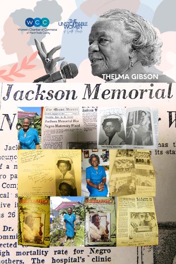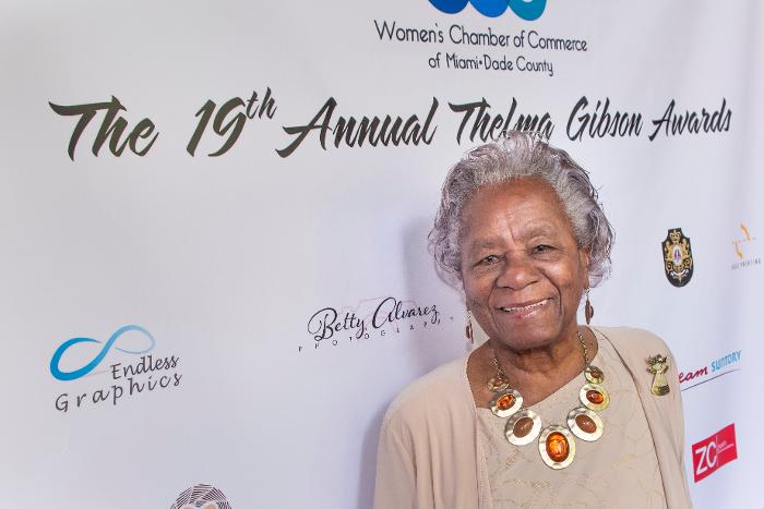 ThelmaGibson founded Miami-Dade County?sfirst women?schamber in 1984 Gibson, aregistered nurse, began her career asastaff nurseat Jackson Memorial Hospital in 1947 For morethan 50 years, shehasalso been atrailblazer in education, mental and physical health, community and professional leadership, volunteerism and serviceto her church, community and family.