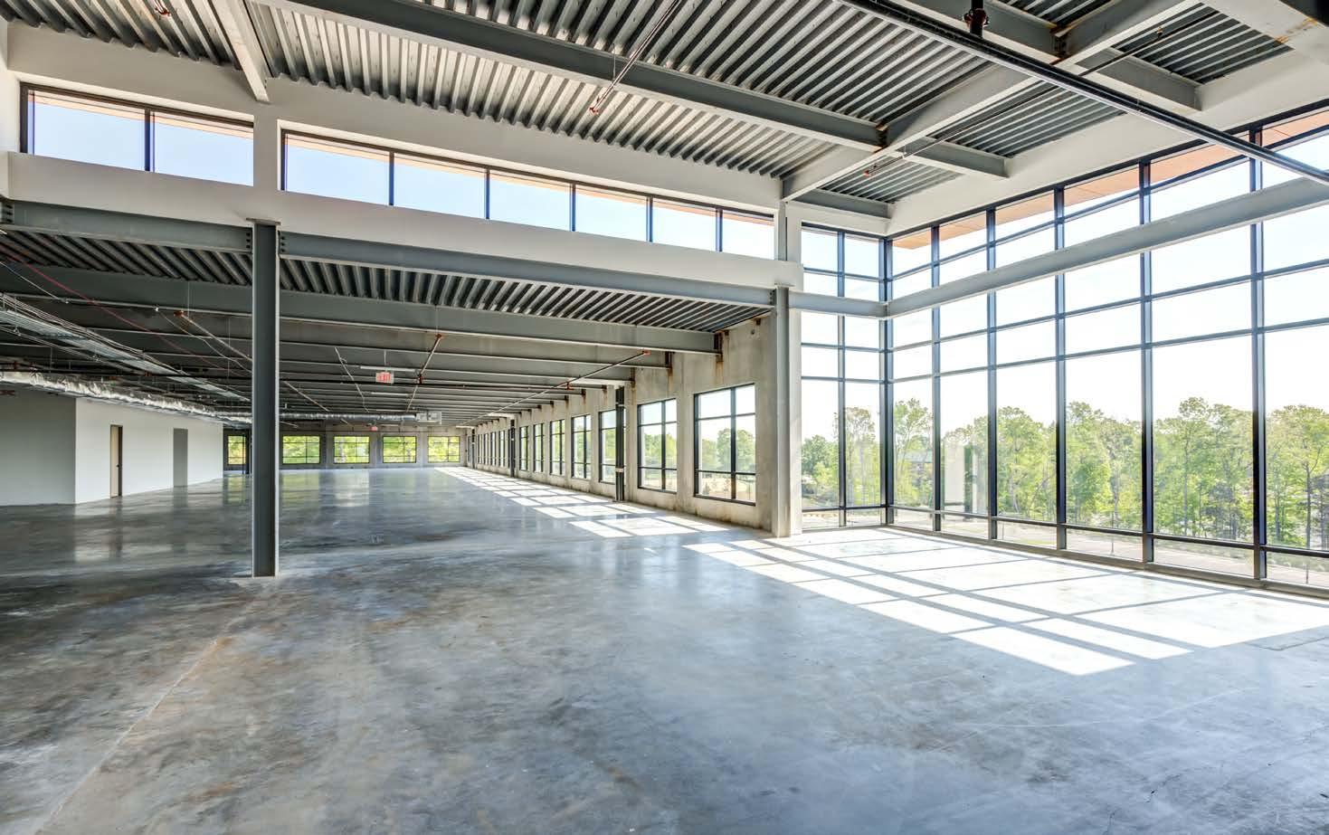 An open and bright contemporary work environment. Each floor plate supports an efficient layout for open office or dense private offices, all while maintaining views.