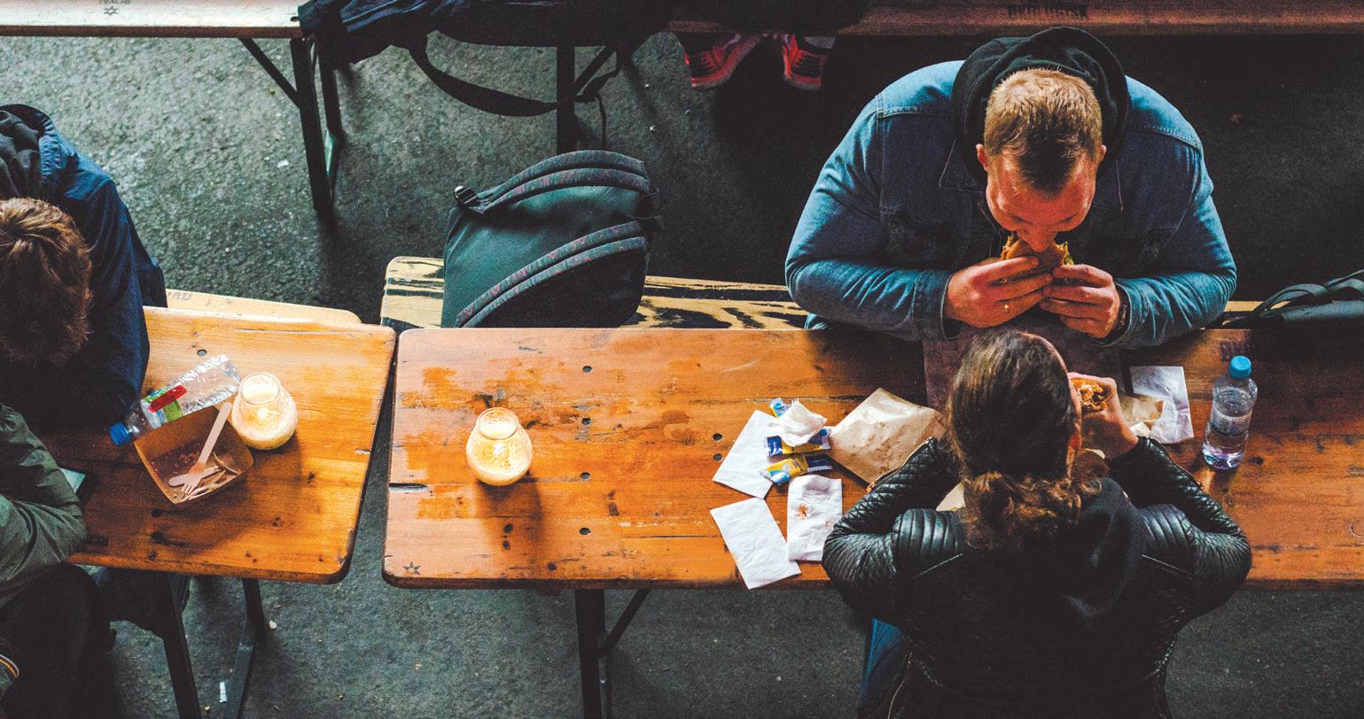 First and foremost, every good conversation needs a topic — and the weather or your CrossFit regimen don’t count. We will immerse our community in conversation starters. Dynamic walls (digital, chalk, etc.) and trained staff will ask provocative questions, highlight trending topics and provide spontaneous “challenges” to help encourage the first step in a great conversation.