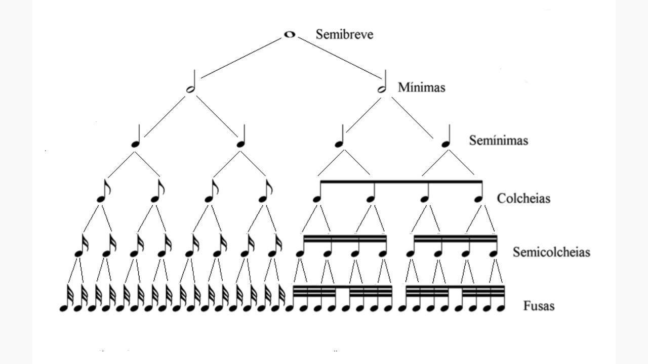 Como vemos, a figura musical que vale mais tempo é a semibreve o que sozinha vale 4 tempos; isto é, num compasso de 4 tempos, uma semibreve toca durante o compasso todo. Já para tocar o compasso todo são precisas 2 mínimas, 4 semínimas e assim sucessivamente. A figura seguinte elucida estas relações de tempo entre cada figura musical. O mesmo se aplica às pausas.