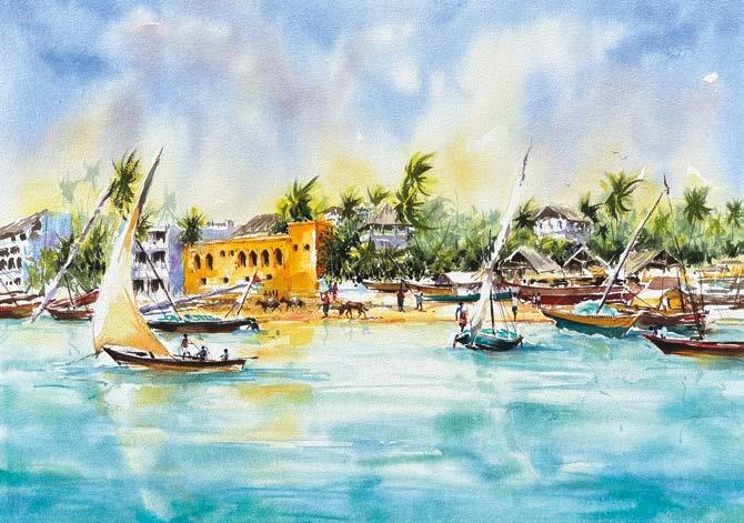 This exhibition, Kenya & Beyond, is the culmination of my time at Lolldaiga and later along Kenya’s coast. Sketches, studies, and memories have been translated into paintings. I am deeply grateful to Moon and Ed Hough, owners of The Safari Series, for their incredible generosity and for offering me this once-in-a-lifetime opportunity. I only hope I have done it justice.