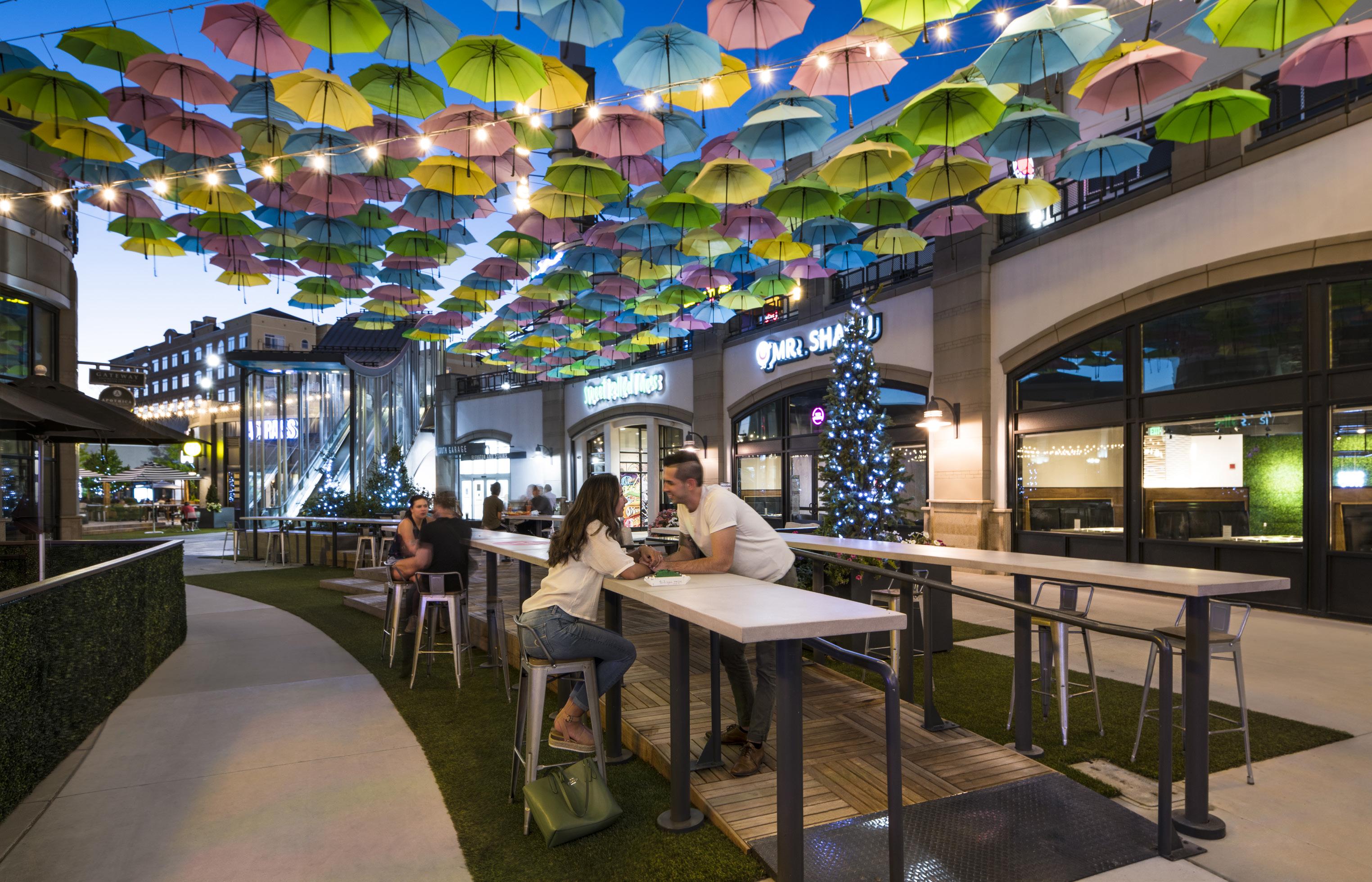 The Gateway Mall is a large open-air retail, residential, and office complex on the west side of down town Salt Lake City. Restaurant Row cuts through the southern end as an outdoor food court, adja cent to a movie theater and retail shopping district along Rio Grande Street. The plaza was in need of identity, and the owner wanted to capitalize on the urban feel of the district.