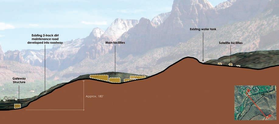 Due to the sensitive nature of the parcel, the CRSA team was tasked with developing a strategy for integrating a facility into the landscape that would not detract from the character of the area. The team also was tasked with identifying a strategy to bring visitors and infrastructure to the site, considering the challenging topography of the property.