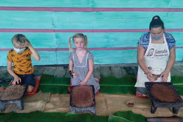 bootcamp on the beach, and the kids joined a cruiser’s homeschooling collective and regular extracurricular activities that were held under the shade of the trees. If we weren’t listening to live music or joining the beach barbecues put on by the locals in the evenings, we were sitting poolside and sipping beers from a $5 bucket with a crowd of other cruisers at Le Phare Bleu, a boutique hotel who’d opened their amenities and their services to cruisers during the pandemic. Every morning there was an activity and every evening there was a social get-together, and the weeks flew by in a social extravaganza unlike any we’d experienced. As yachts gather in Grenada every year for the hurricane season, it was clear that the regularity of this influx of boats had resulted in a solid cruising community and a variety of services and events that have arisen from it. Far more than a collection of retired boats and sunburnt seamen, my preconceived notions of Grenada didn’t come close to the reality of the vibrant cruising network that existed on this popular island.