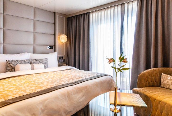 We enlisted the expertise of leading architectural firm GEM to embark on the remarkable redesign of our suites. Under GEM’s steerage, we merged existing smaller staterooms to create harmonious spaces such as the Sapphire Veranda Suite and the Junior Crystal Penthouse Suite. These larger, more comfortable suites offer a superlative experience, from Italian marble bathrooms to exclusive linens designed by Jesurum 1870. Combining fresh, modern aesthetics with a touch of contemporary, classic elegance, our suites aboard Crystal Symphony provide an unparalleled experience on the high seas while maintaining our unmistakable identity.