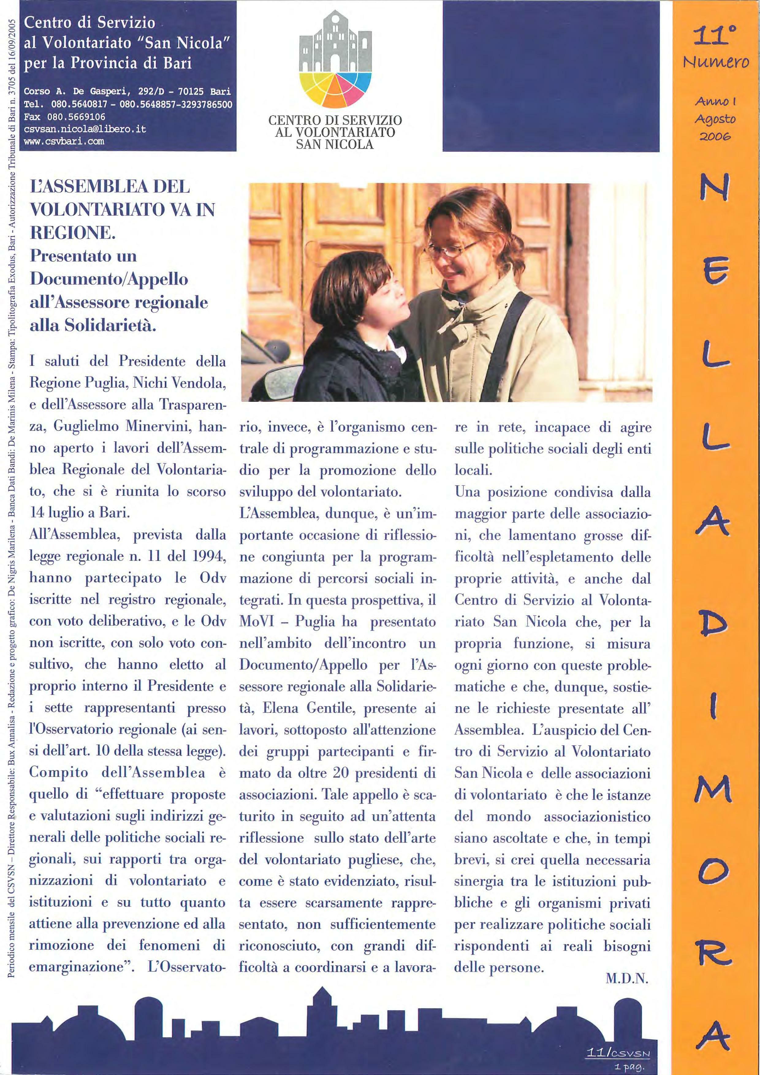 Nella Dimora Agosto 2006 n° 11 rivista CSV San Nicola