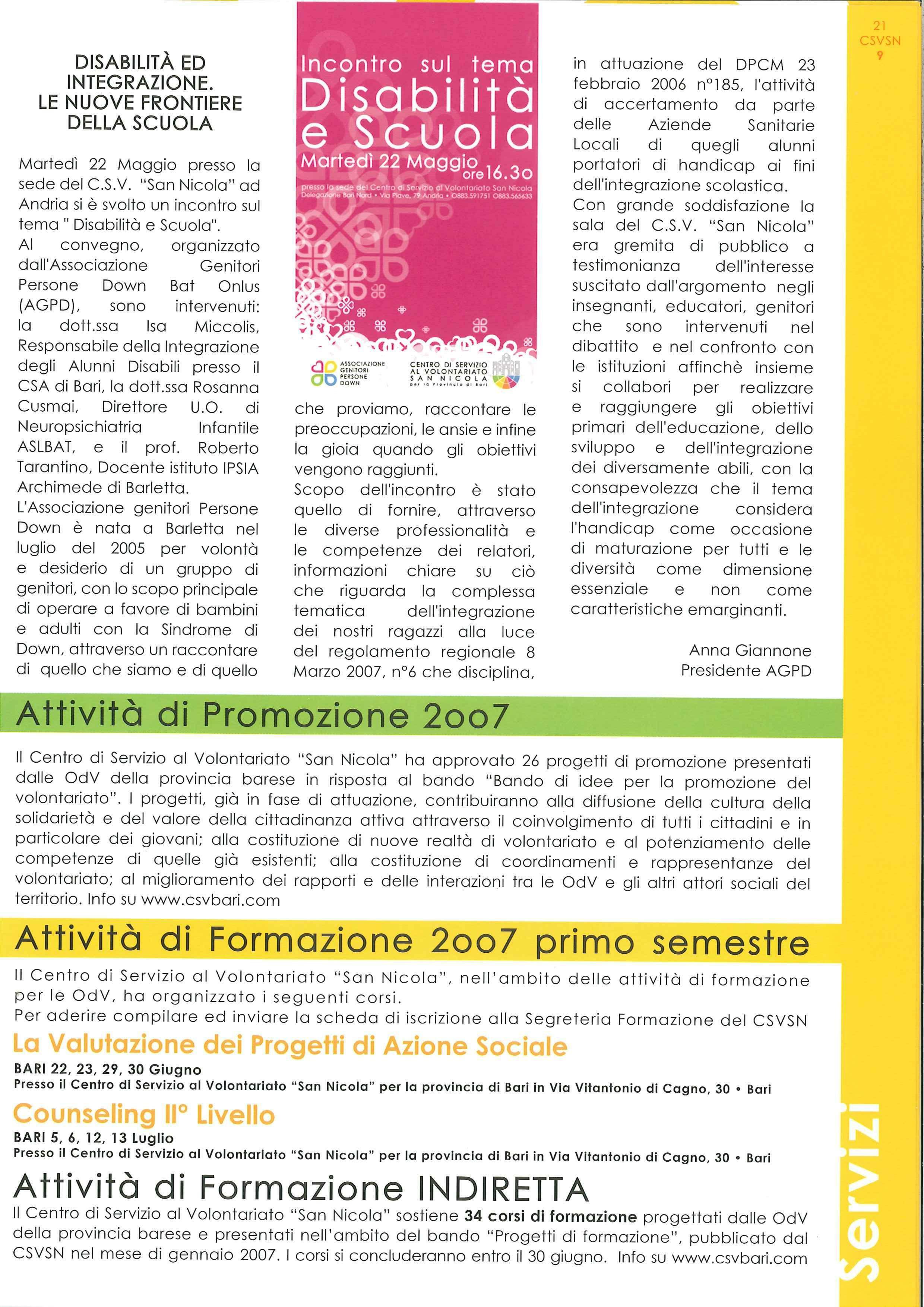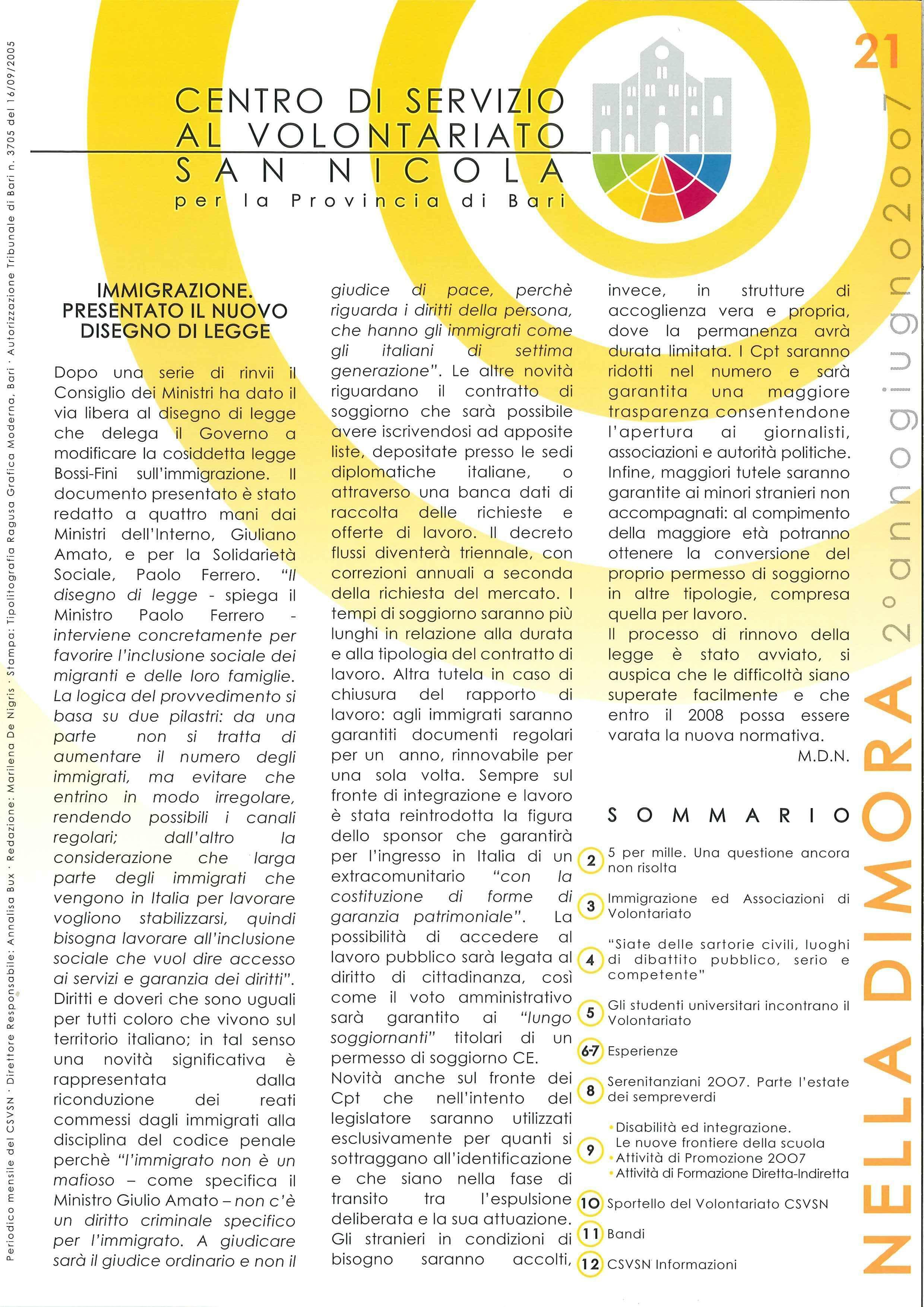 Nella Dimora Giugno 2007 n° 21 rivista CSV San Nicola