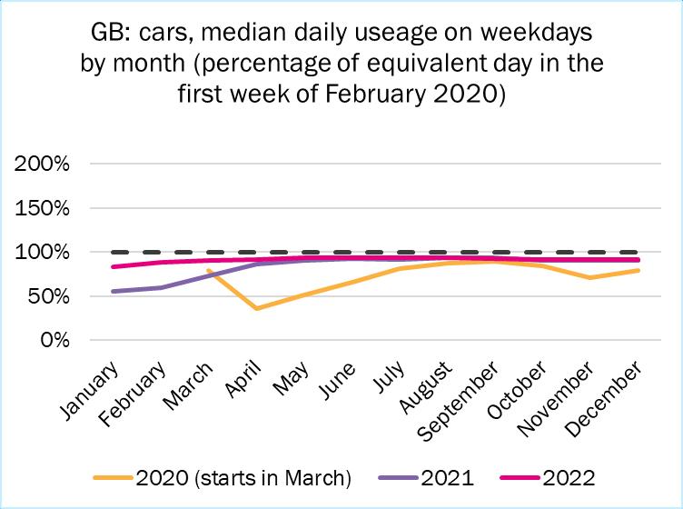 At the start of the Covid-19 pandemic, the Department for Transport began to publish daily estimates for domestic transport usage each day, comparing them to baseline figures in an equivalent day or week before the pandemic struck.
