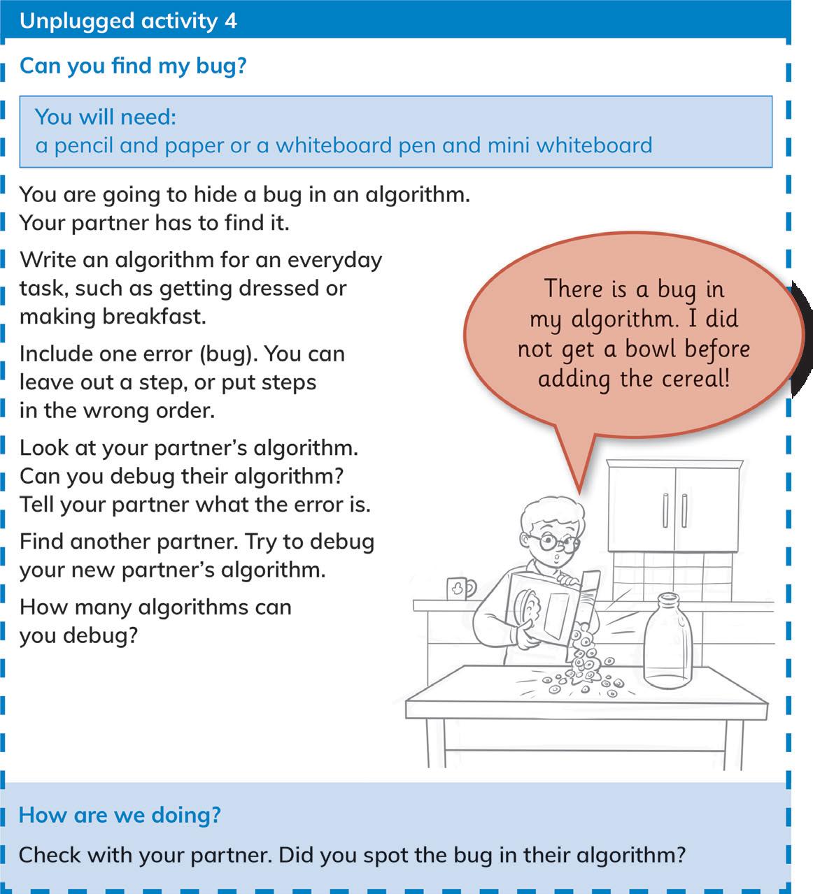 Some activities don’t need a computer. These are called unplugged activities. They help you to understand important ideas about computing.