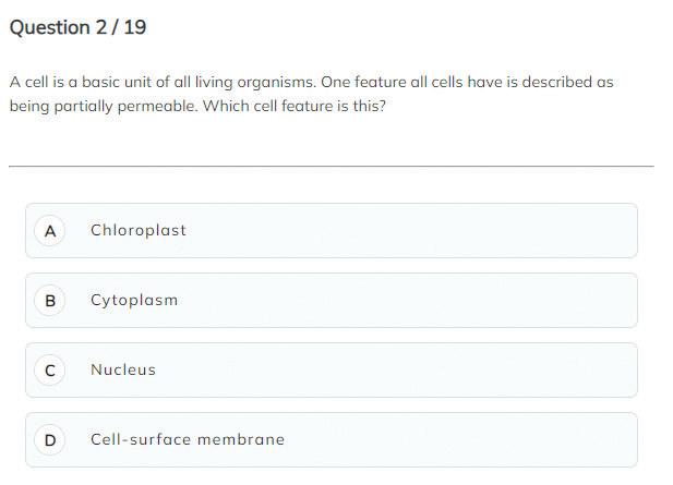 These ask you to select the correct answer to a question from four options. These are auto-marked and feedback is provided.
