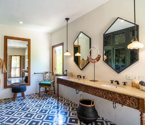 Recline under the tropical breeze of overhead fans on sumptuous rattan sofas covered in fabrics by Ralph Lauren & Oscar de la Renta. Immerse yourself in a fusion of perfectly imperfect colours, patterns & island tropicana combined with antiques & eclectic table lamps layered with garlands of shells.
