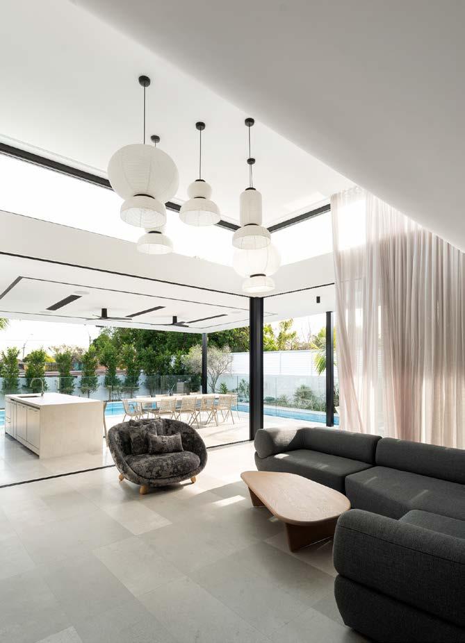 Concealing the plumbing, roofing, downpipes and wall capping and finishing the exterior in a polished render has added to the home’s striking visual appeal.