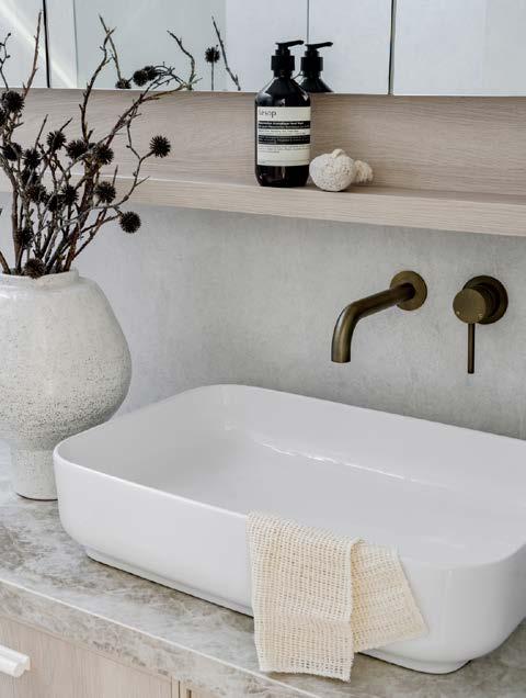 Pared back, but highly detailed, the interior incorporates highly complex artisan elements such as bespoke concrete benchtops and hard plaster render to wet areas. Subtle plays on texture and matt and gloss finishes add visual interest to what is a cohesive design approach which includes, American Oak custom joinery and engineered flooring, and brushed gold tapware and accessories throughout the 4 bedroom, 4 bathroom home.