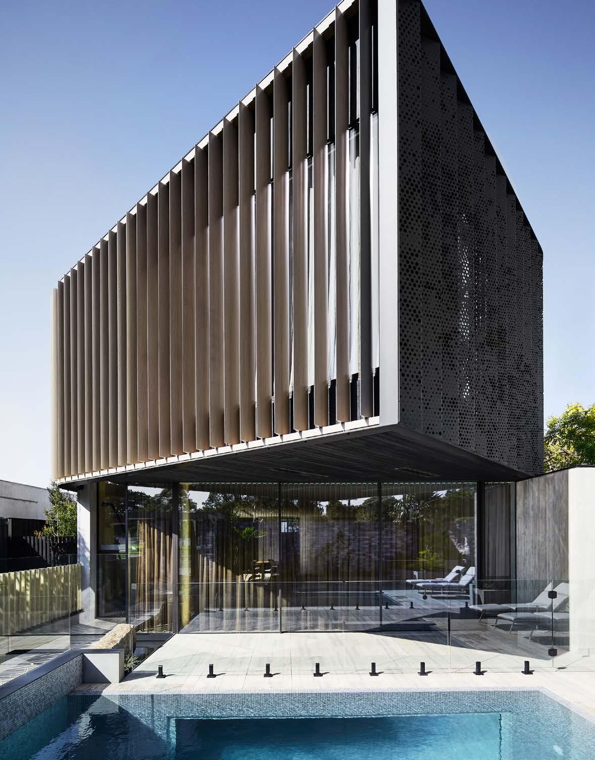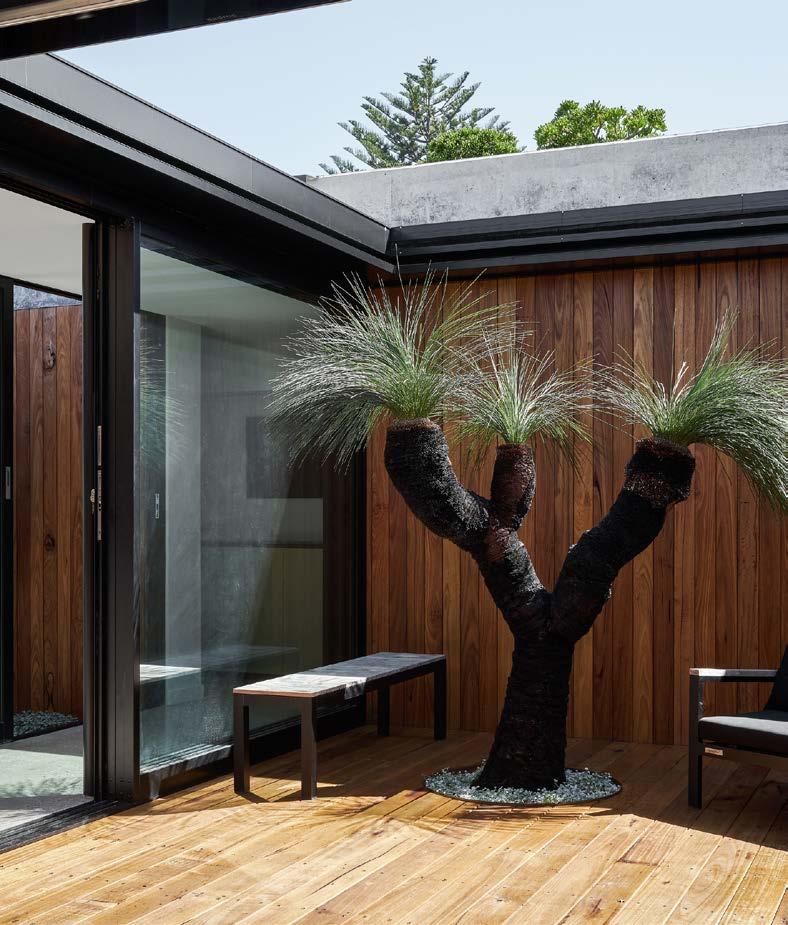 Feature timber to the façade, complements timber batten privacy screening each in spotted gum chosen for its ability to age well and connect the home to the surrounds.
