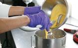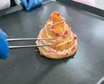 ⑤ 抹平動作要迅速且確實,以確保餅殼平整且具一定厚度。
