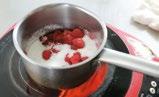 17 冷凍覆盆子、細砂糖加熱至攝氏 40℃,加入 16 混合煮滾 2 分鐘。