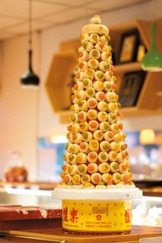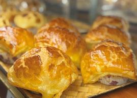 地使用新的原物料,也持續地在既有的產品基礎上,不停的精進 研發不同的操作應用進而推出新品,成功地受到消費者的喜愛, 常有排隊人潮的新聞報導,如扁可頌、千層吐司、千層蛋塔、蝴 蝶酥、鬆餅漢堡等等,而節日應景的蛋糕甜點,蛋黃酥、聖誕麵