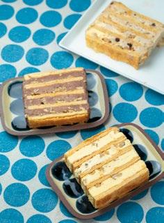 採鹽增加微鹹香氣的鹽花頌。新近推出的人氣商品則是外層淋滿楓 糖漿、外酥內軟的千層生乳吐司,層層手撕超過癮,麵包體絲滑綿 密,入口是奢華奶香滿滿,叫人一口接一口,百吃不厭! 蔓越莓牛軋糖。