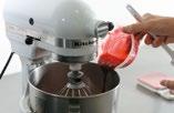 14 奶油餡、冷凍覆盆子果泥攪拌混合。
