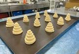 協助下,選手們一步步了解設備操作、噴蒸氣量控制, 在歐式麵包、甜麵包、藝術麵包三大比賽項目的產品 控制與熟稔程度,都獲得快速而顯著的進步。