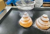 ⑥ 取下圈模,均勻撒上糖粉,待餅皮受潮後再撒一次。