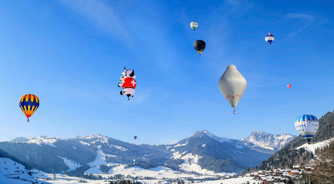 very winter, the picturesque village of Châteaud’Œx plays host to the International Balloon Festival. For over 40 years, this not-to-be-missed event has brought together pilots and enthusiasts from all over the world to fly brightly coloured hot-air balloons in a breathtaking mountain setting.