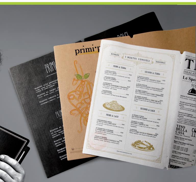 DAG Style offers internal pages in 170 gsm mattcoatedpaperdie-cutandprintablewith laser copiers, a perfect platform for covermenus.