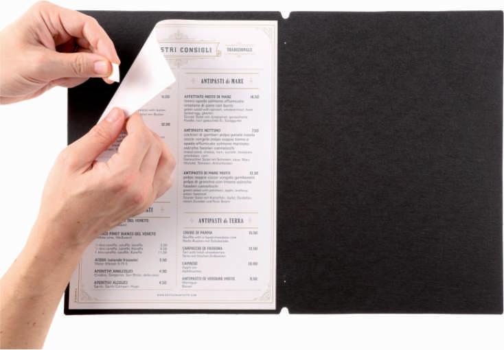 The menu holder that best expresses the elegance of an eco-friendly philosophy. The material, known for its characteristics of durability,hygieneandrecyclability,makesitperfectlysuitedforpresentingwinelists, Also,thankstoitsneutral colour, itcanbecombinedwithanyfurnishingstyleortypesofcommunication.