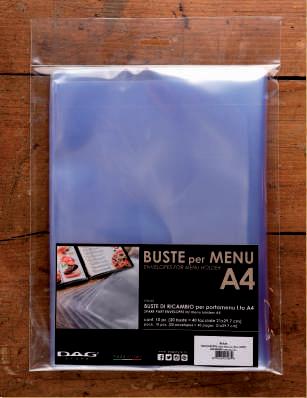 Size A4 Size 4RE Size QUADRATOFrames suitable for gluing menu-sheets with the very strong, repositionable, double-sided adhesive squares provided. These frames are easy to insertorreplaceinsidetheDAGcoversthankstotheelasticbandontheback,designedtolocktheframeinplace.