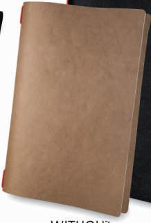 The 'paper effect' surface finish makes the waterproof ma polyester pleasant to the touch. The shape of the interior for DAG Style covers is designed to keep the pages in the correct posi on, ensures easy replacement of the sheets when needed and offers a larger printable area than the standardsheets.