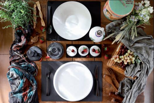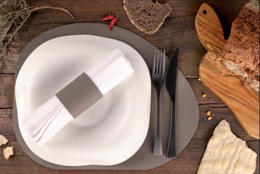 D i e T i s c h s e t s , d i e d i e E l e g a n z e i n e r umweltfreundlichen Philosophie am besten zum Ausdruck bringen. Durch das verwendete Material, das für seine Langlebigkeit, Hygiene und Recyclingfähigkeit bekannt ist, eignen sie sich perfekt zum Eindecken des Tisches und sind dank ihrer neutralen Farbe mit jedem Möbelstil kombinierbar.