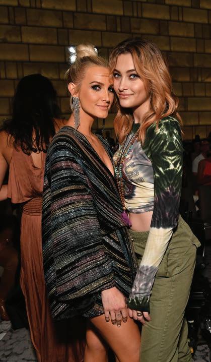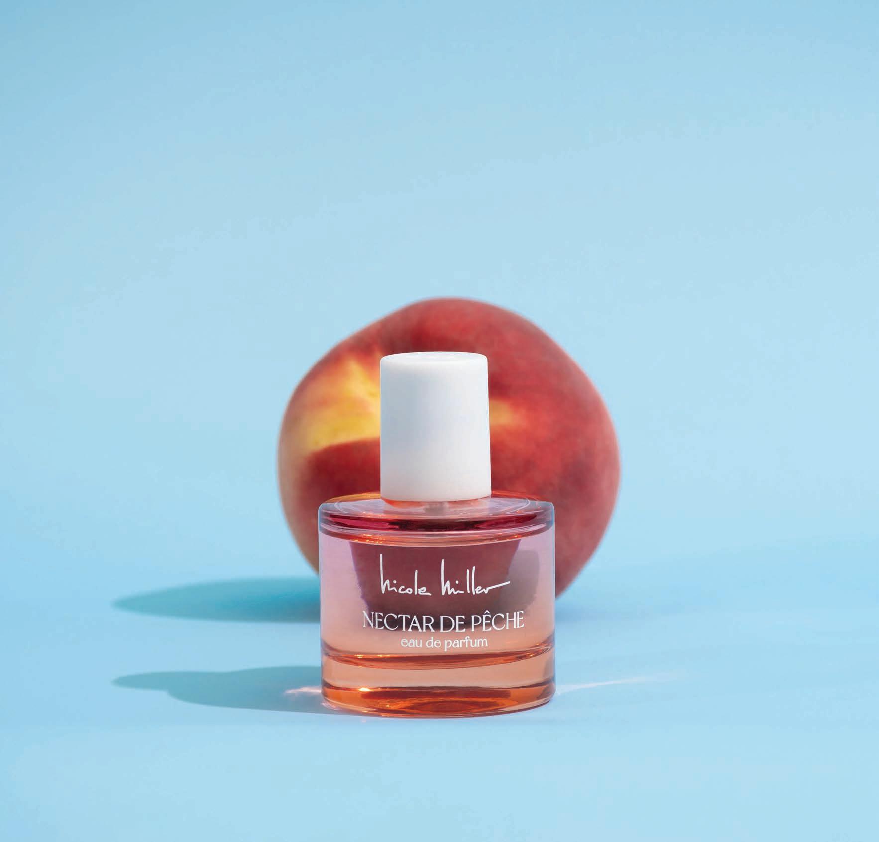 Guests arrived to the two-story beach club in their Nicole Miller Spring/ Summer ’23 pieces and met with the on-site engraver, who customized a decorated fragrance bottle for everyone. Fittingly, Sophie Sumner also had her dog, Peaches, with her to double down on the peach theme.