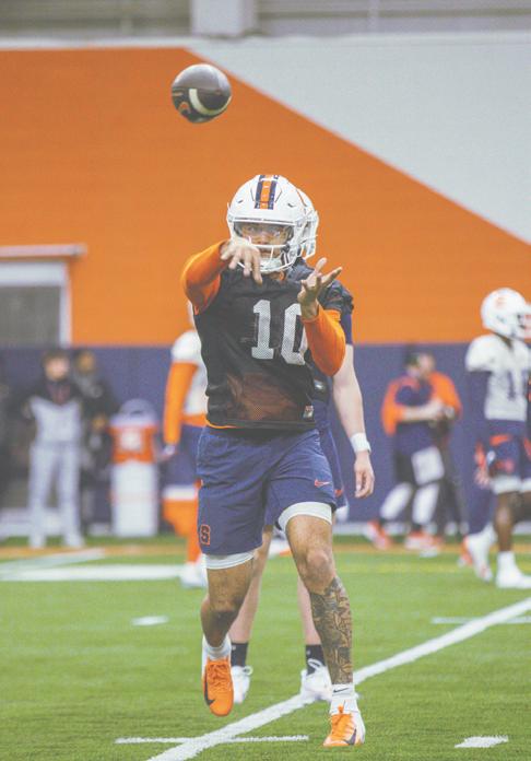 With McCord and other key figures of the 2024 squad headed to the NFL, Brown is now looking for an encore. SU brought in 14 early enrollees from the 2025 class and seven players through the transfer portal. The newlook roster has developed throughout the spring over three weeks of practices.