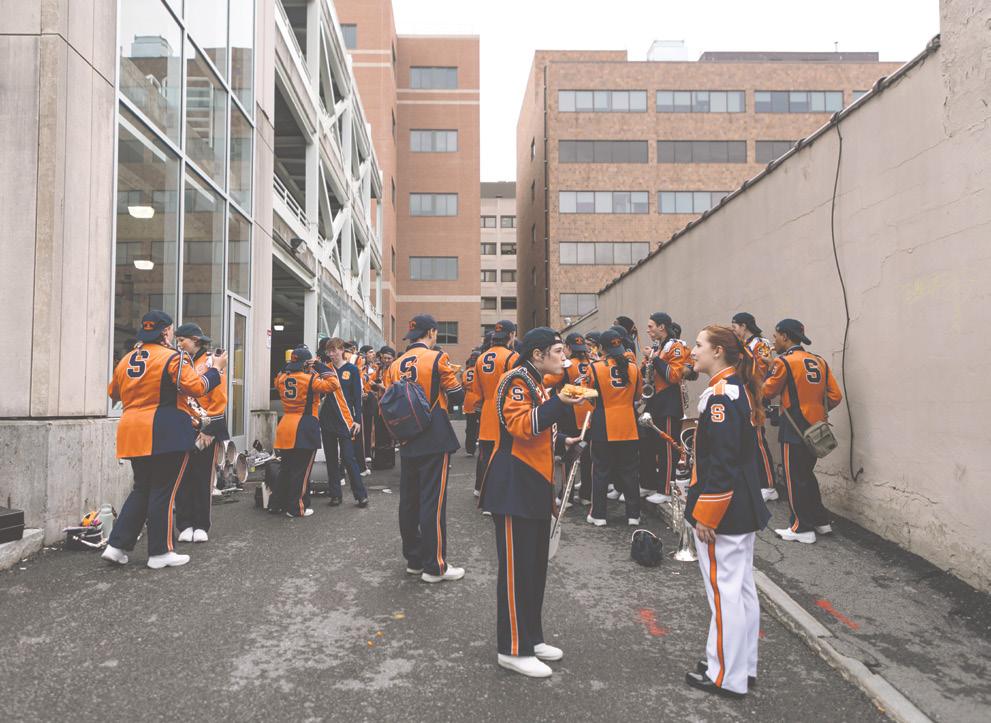 C • ‘Mob mentality’ For over 40 years, some members of the marching band have taken over Varsity for the “banner flip” tradition.