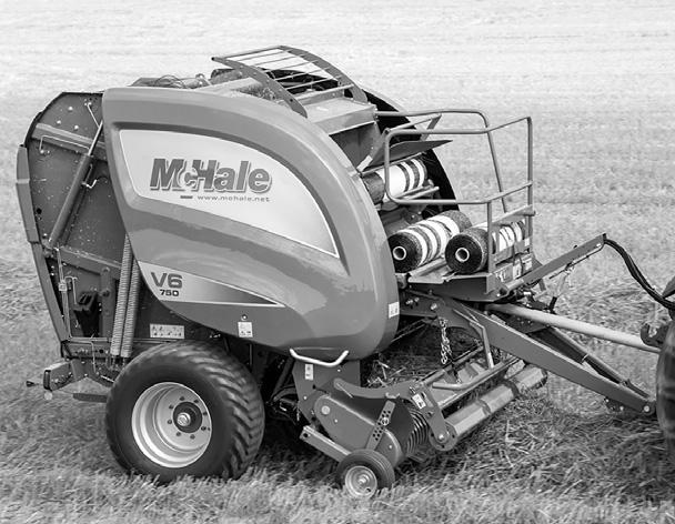 The McHale V6750 is a semiautomatic variable chamber baler capable of producing bales from 0.6–1.68m (2’–5’6”).
