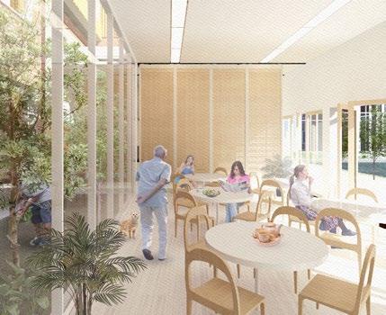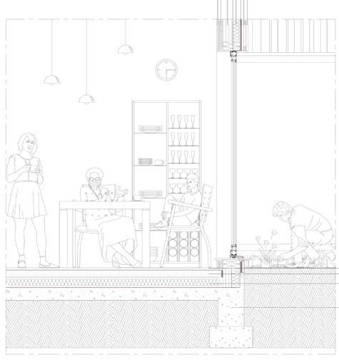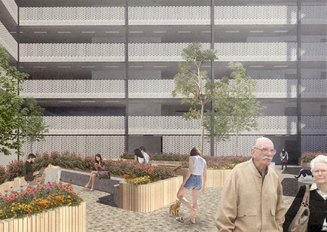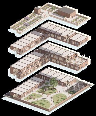 A team of 5 designers cooperated during the majority of the project, working together on on-site analysis and the development of a master plan on an empty site, then divided into 3 smaller teams each to work on designing an individual building with the same structural, environmental strategies and initial concept; Community-led business to sustain an age-friendly neighbourhood. A team of 2 worked on this project, designing a mixeddevelopment building proposal with a high priority on the unit’s design. The units were designed with an office space divided by a modular wall system that allows residents living side-by-side to rent or share their adjacent office space for retail or personal use.