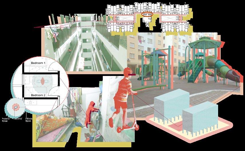The earlier part of the thesis (studio 1) involves methodologies exploration and thorough investigation of the topic, mainly referring to and using artistic and architectural works made by artists and architects as precedents. The architectural implication of structural discrimination and its relation to child’s poverty constructed the final research questions while the methods explored instigated the different approaches of the design process.