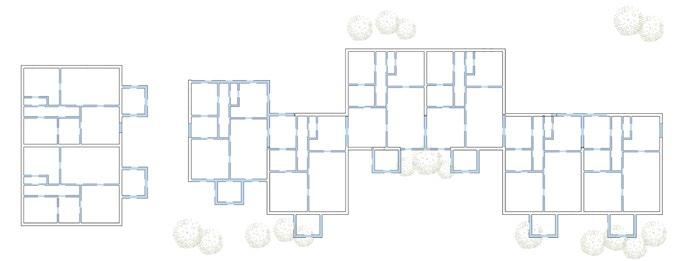 Yellow : Removed apartments to create larger gardens