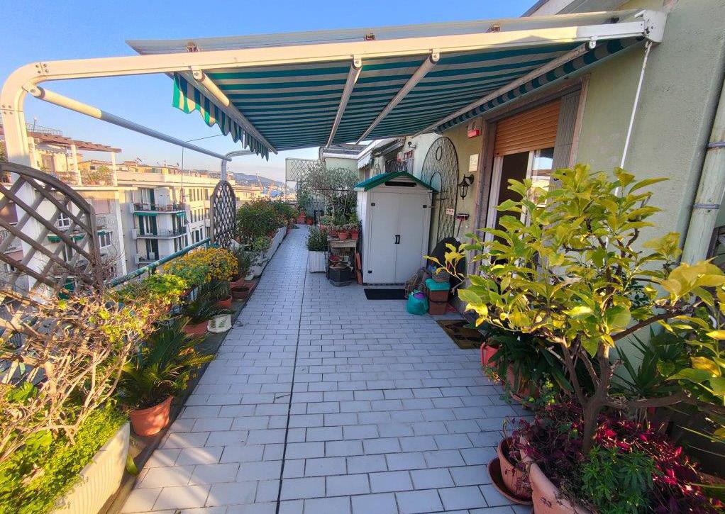 Attico con terrazza abitabile vista mare, ampio appartamento composto da salone, cucina, 3 camere e doppi servizi. Terrazza abitabile in parte verandata. Libero e abitabile subito!