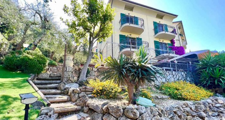 Affascinante appartamento indipendente vista mare su 4 livelli, di 7 vani, 3 camere, 3 bagni, doppio soggiorno, cucina abitabile, box collegato,incantevole giardino di 357 metri quadrati.