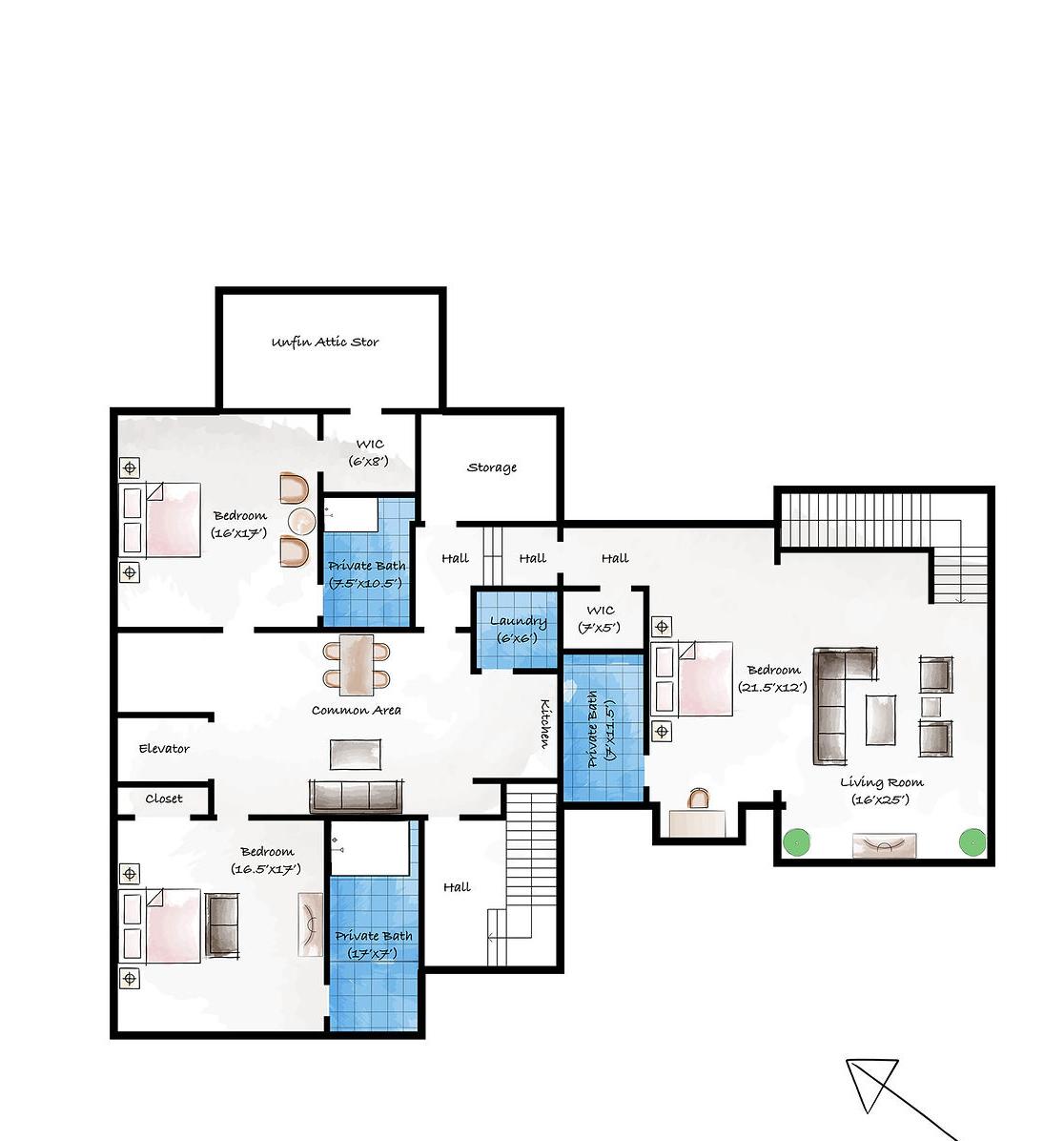 - Additional Refrigerator + Sink + Dishwasher + Storage