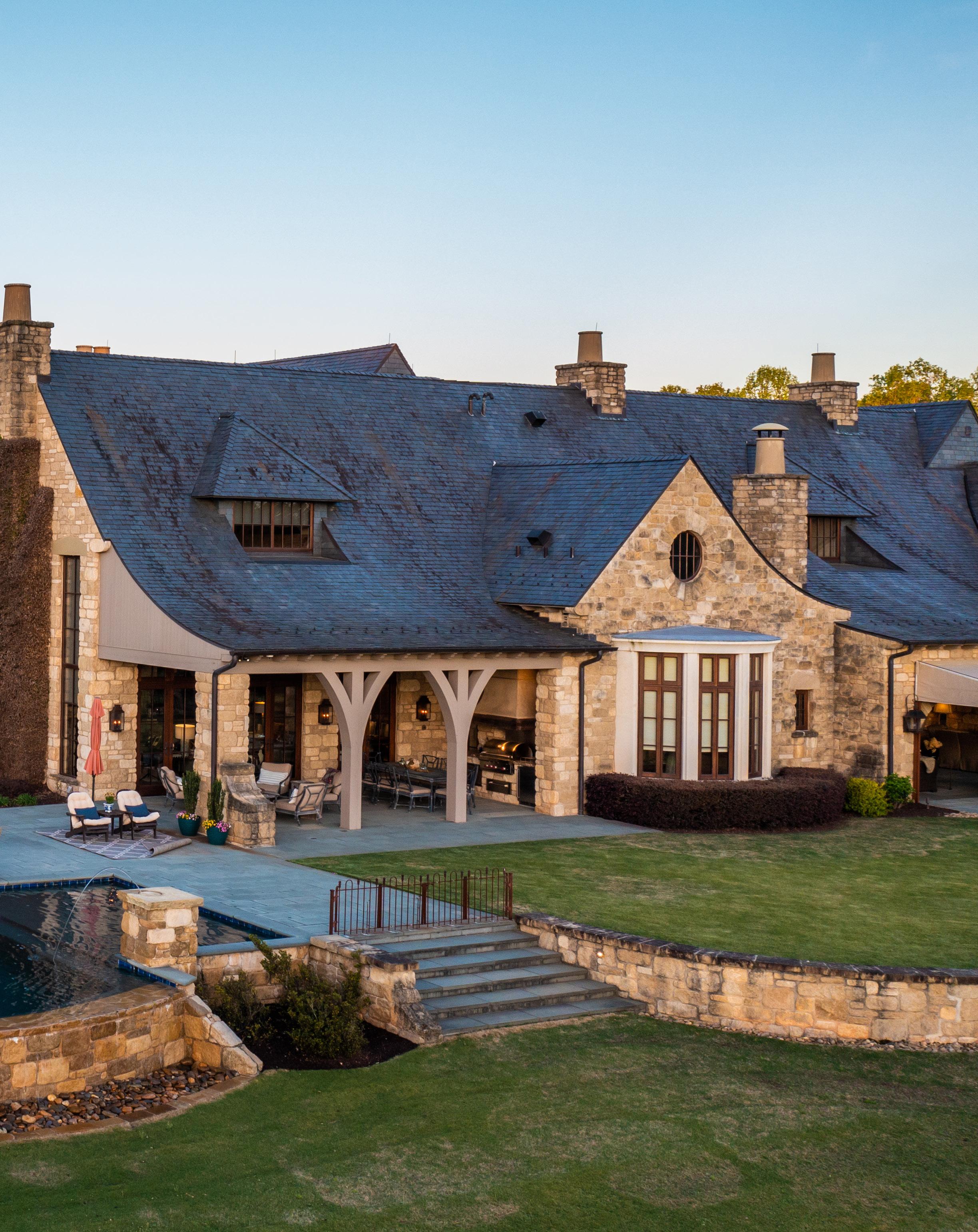 An authentically styled estate that feels like it was built in the Cotswolds 200 years ago, a region in the south of England. Hand built, with exquisite attention to detail, going as far as using historically accurate cut nails, beams sourced from old mills, masonry fireplaces, and full plaster throughout the house. Other bespoke elements include a street lamp from Central Park and stone planters constructed from the Great Wall of China. The fine details and features compiled on the following pages are both extraordinary and exhaustive.